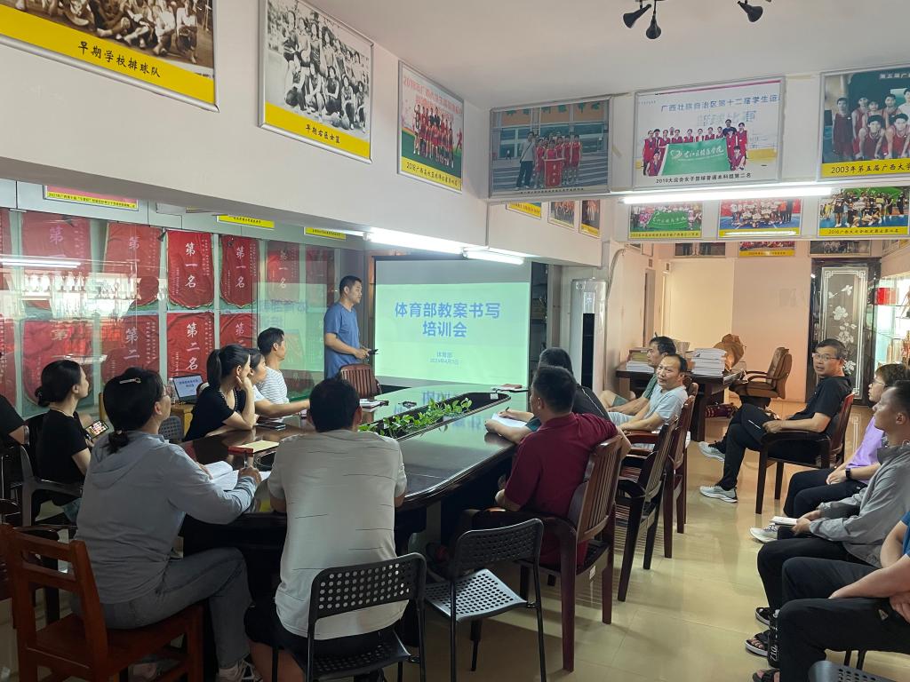 体育部公共体育教研室于2024年4月3日下午4时组织全体教师在体育训练中心二楼会议室开展教案书写培训会,本次活动由莫国锃老师主持。